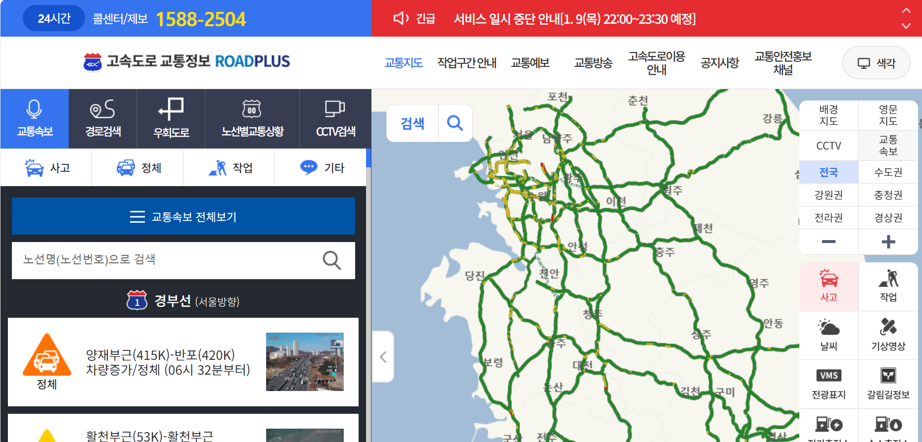 1. 국토교통부 교통정보센터: CCTV로 실시간 확인