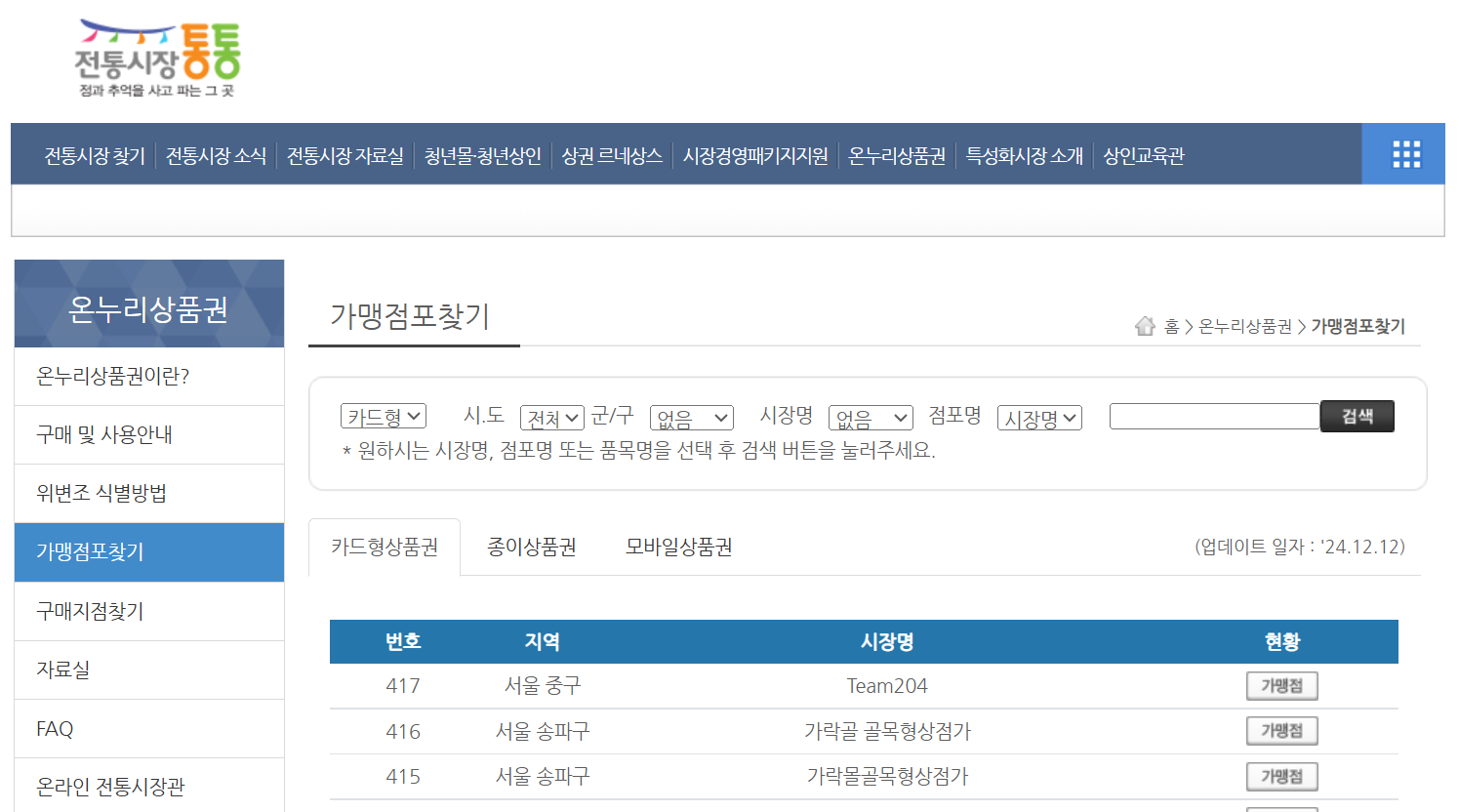 - 전용 앱 이용: 온누리상품권 전용 앱을 통해 주변 가맹점을 검색할 수 있습니다.