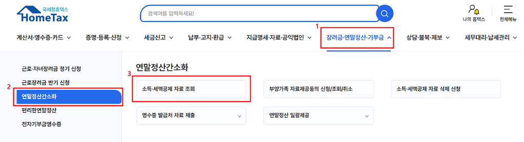 - 자료 조회: 소득공제 및 세액공제 자료를 확인합니다.