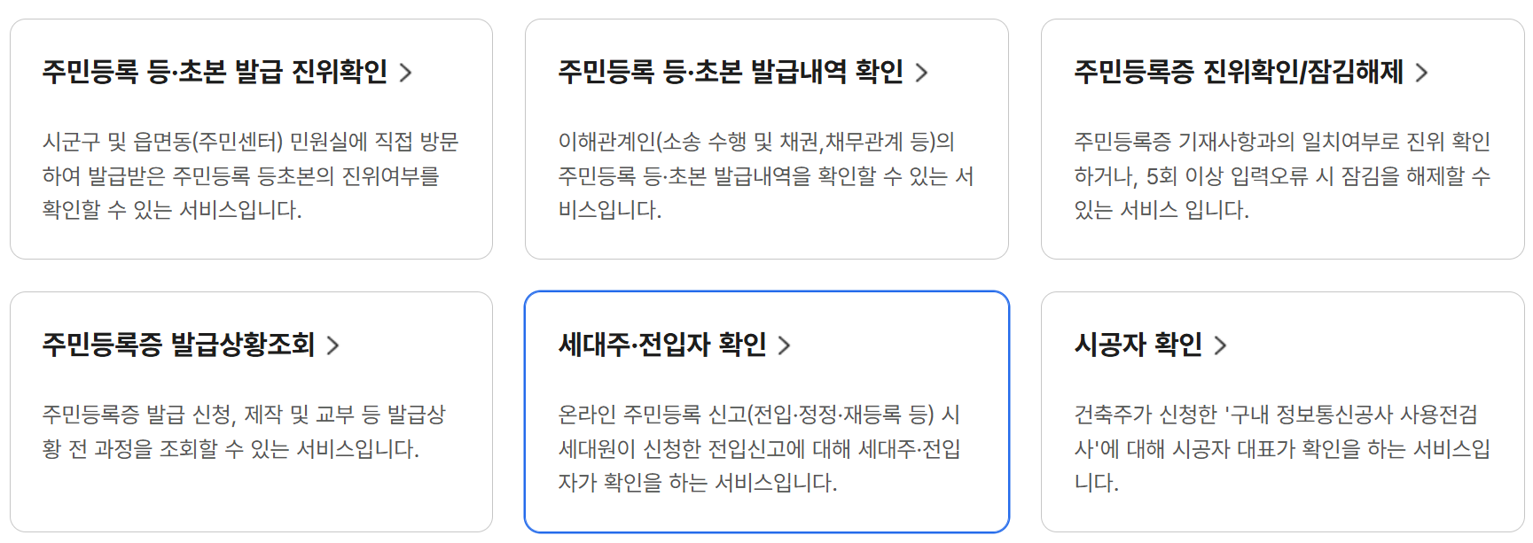 - 카카오톡 인증: 전입신고를 하면 전입자 모두에게 카카오톡 알림이 발송되며, 메세지가 확인이 되면 정부24에서 이를 통해 세대주 확인 진행