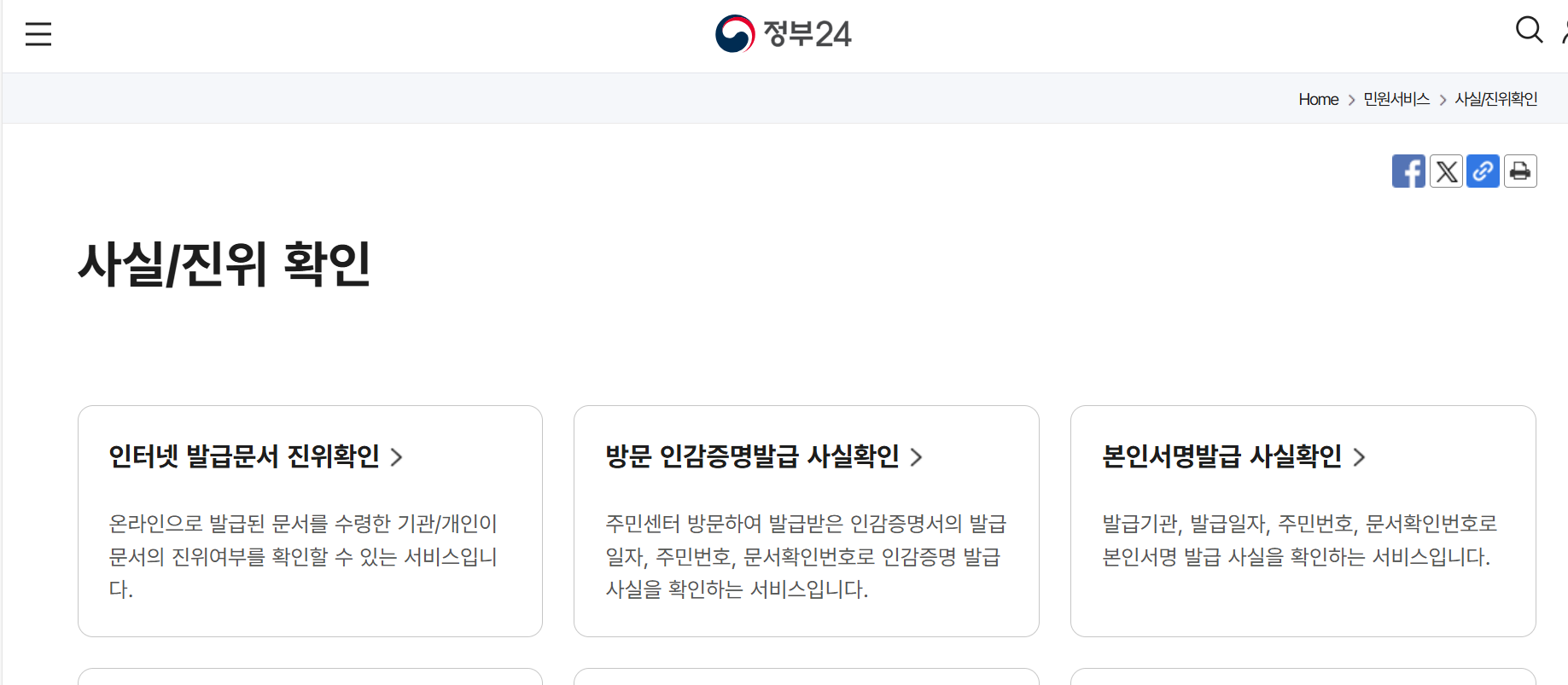 - 민원서비스 > 사실/진위확인 메뉴 선택