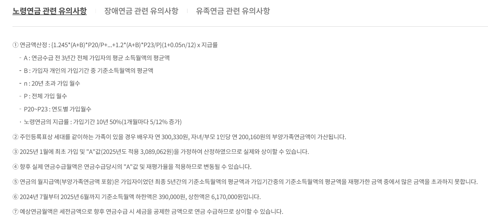 - 일정 기준을 초과할 경우 노령연금이 감액 또는 지급 제한될 수 있습니다.