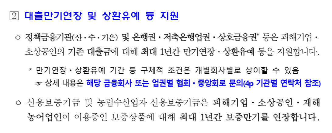 피해 기업도 복구자금과 유예 혜택을 받을 수 있습니다.