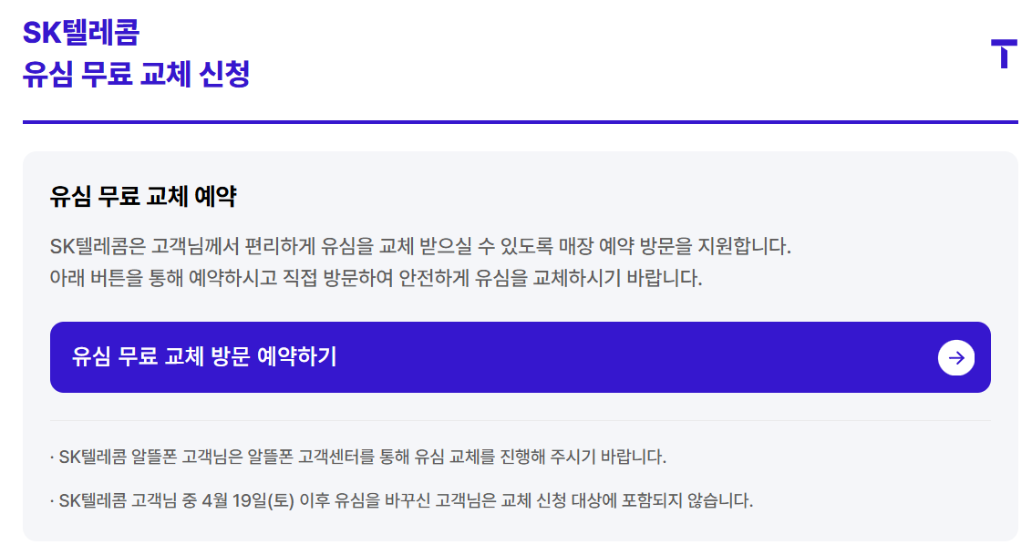 💡 Tip: 안전한 통신 환경을 위해 지금 바로 SKT 유심 교체 예약이 필요합니다.